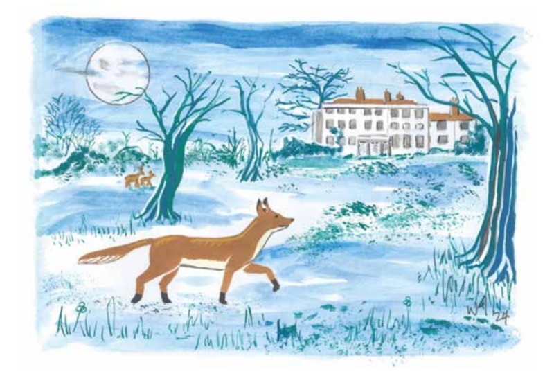 Our 2024 Foxlease Christmas Cards designed by artist Wendy Ingle. Price is for 4 x A6 landscape cards. The wording on the inside reads 'Season's Greetings'.